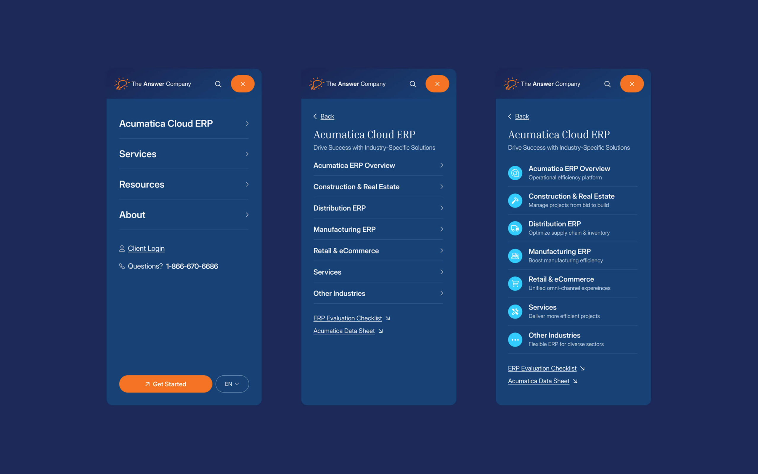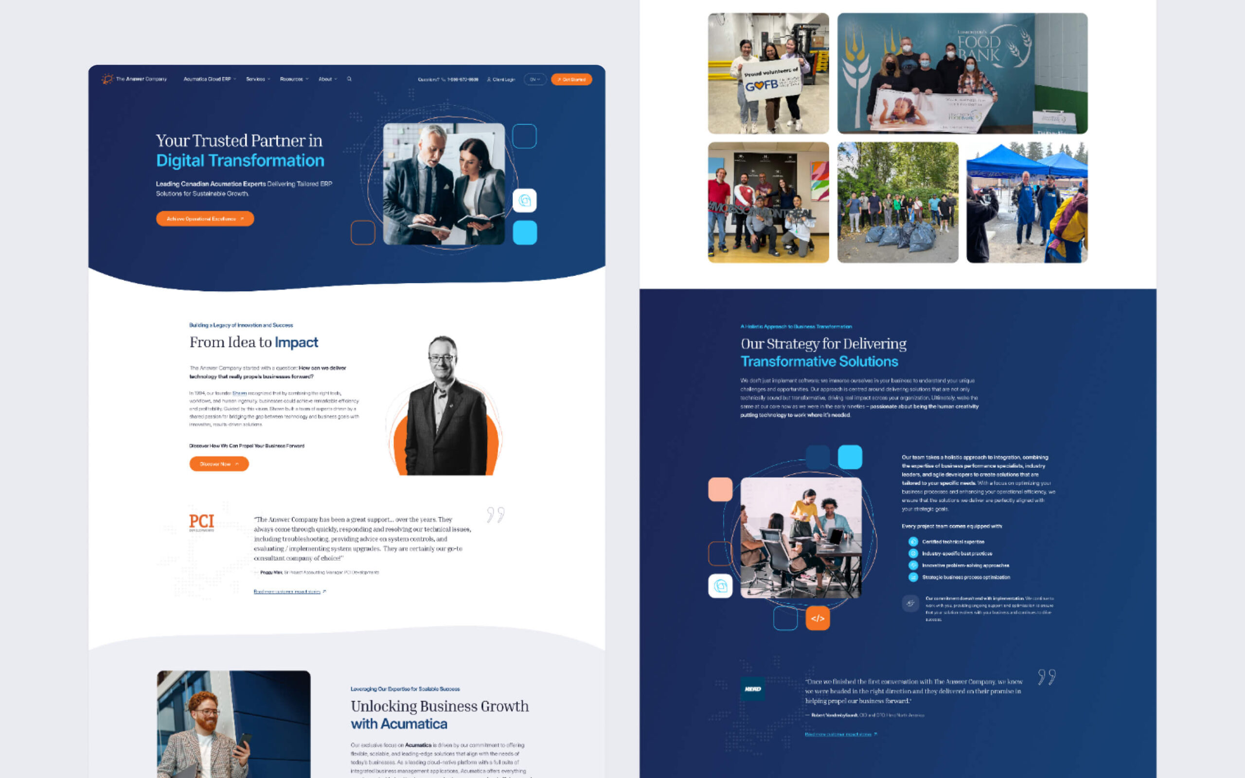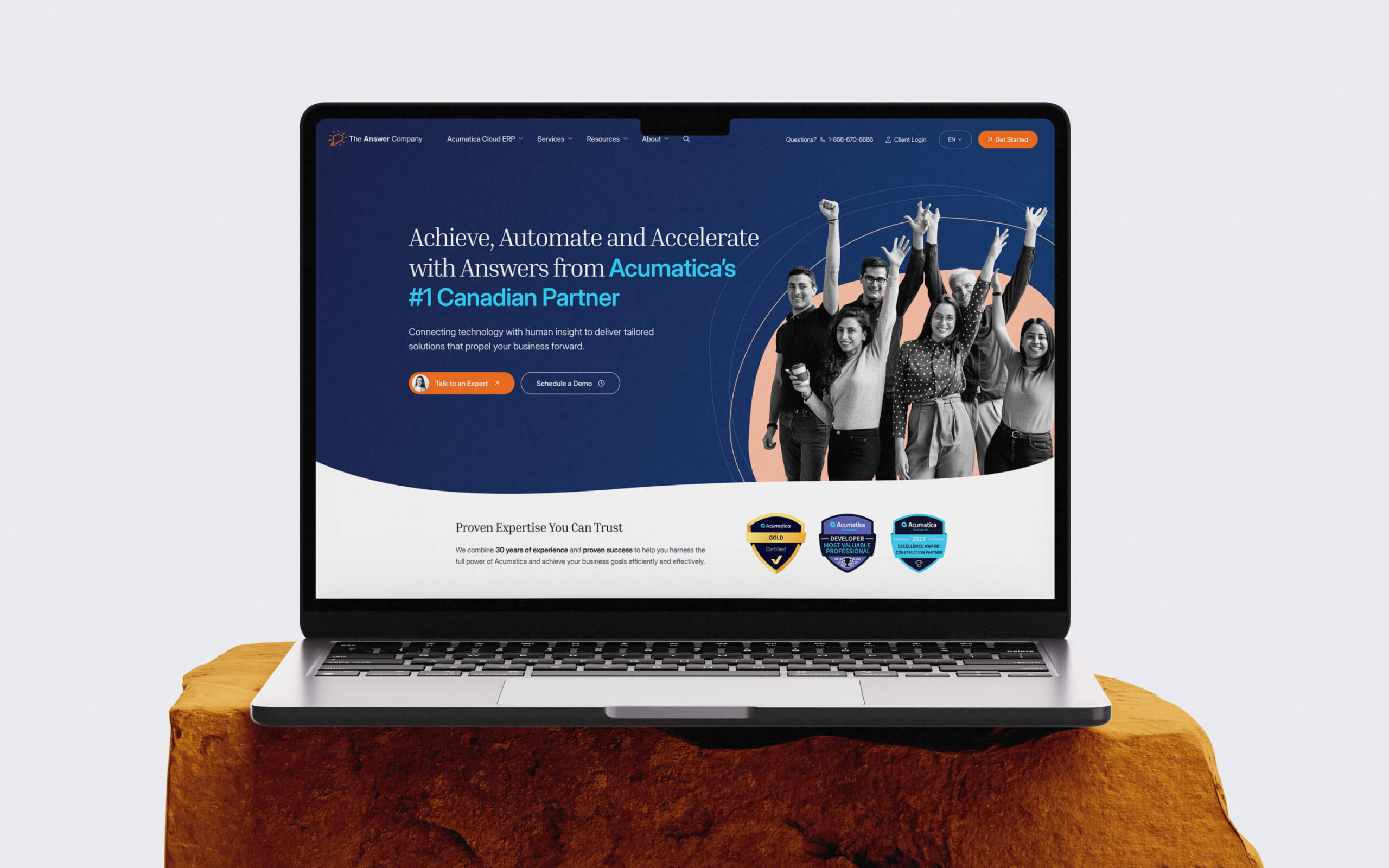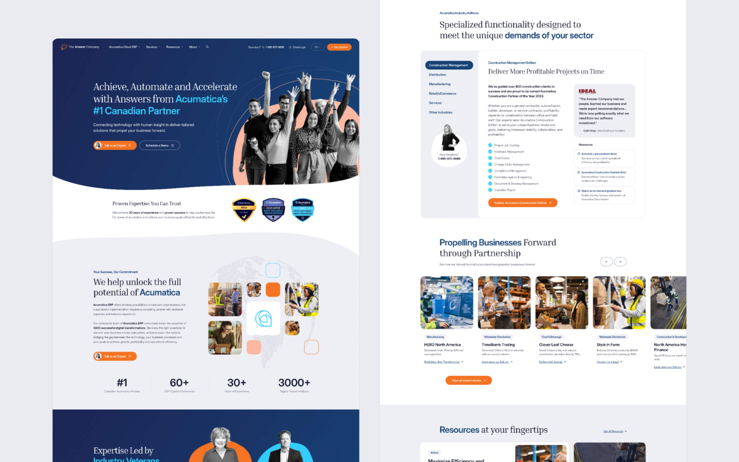 The Answer Company, Canada’s leading Acumatica specialist asked for a new website that could carry depth without losing clarity. Content-heavy by nature, the platform needed structure, bilingual reach (EN/FR), and a design system that reads clean at scale.